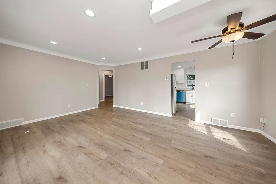 Available NowThis renovated 2-bedroom, 1-bath single-family home features modern conveniences and thoughtful updates. Freshly painted and new flooring throughout offers an inviting atmosphere throughout the living areas and bedrooms. Remodeled eat in kitchen with stainless steel appliances, tile backsplash and stone countertops. Enjoy a lovely outdoor space with a fenced yard, large deck, shed and an awesome finished garage. Great location offers easy access to local shops, parks, schools, and major expressways.